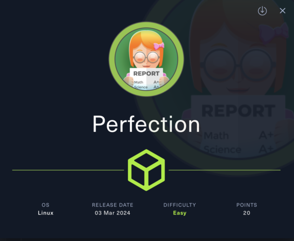 7 Jul, 2024 Hack The Box: Perfection Machine Walkthrough – Easy Diffucility Easy Machine Challenges, HackTheBox, Linux, Penetration Testing