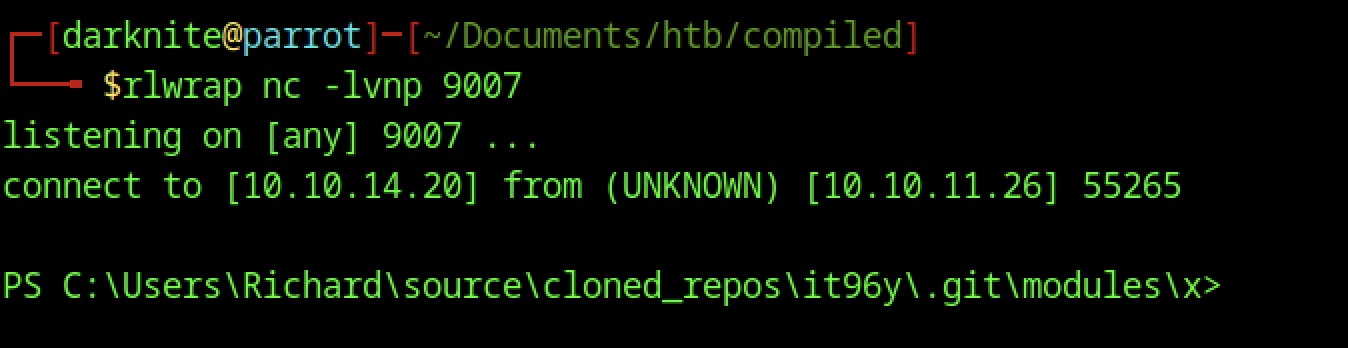 ┌─[darknite@parrot]─[~/Documents/htb/compiled]