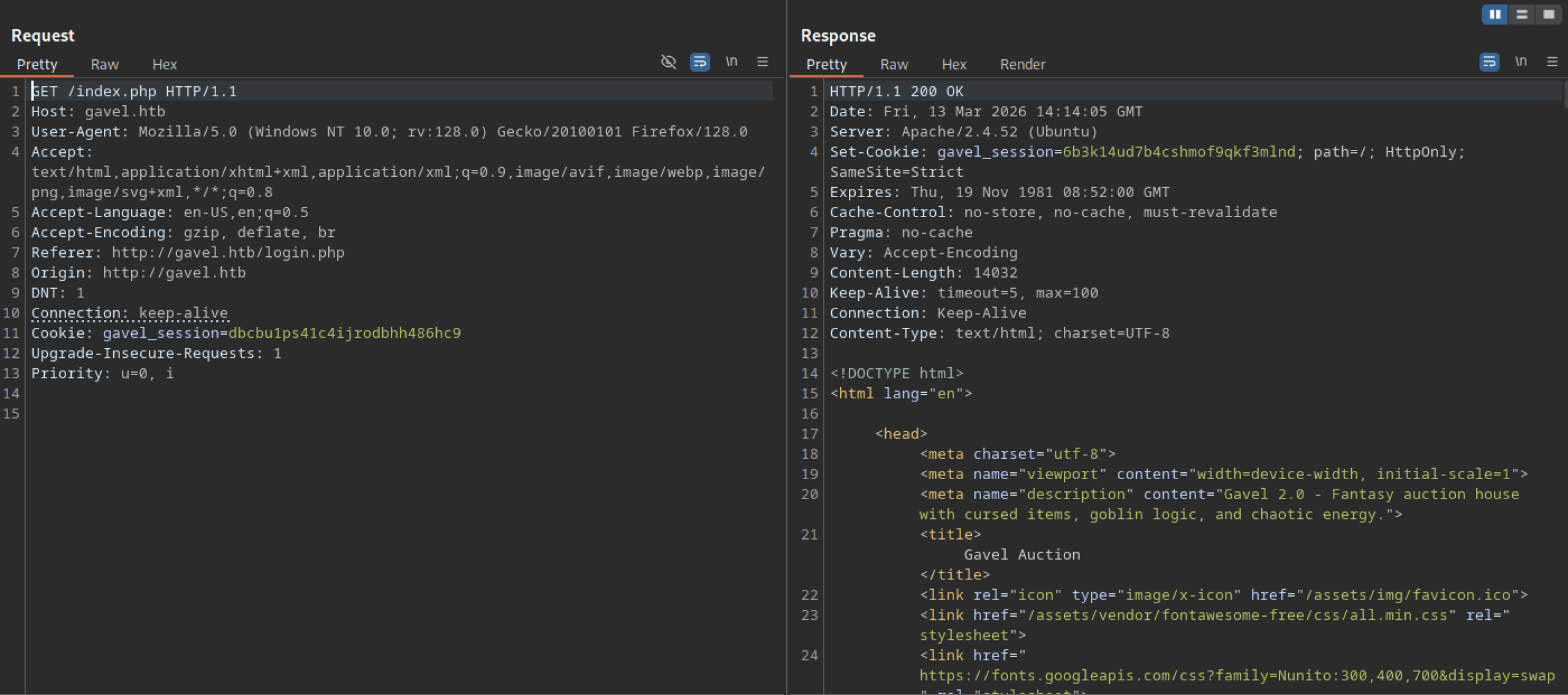 HTTP Request Analysis with Burp Suite on Gavel Machine