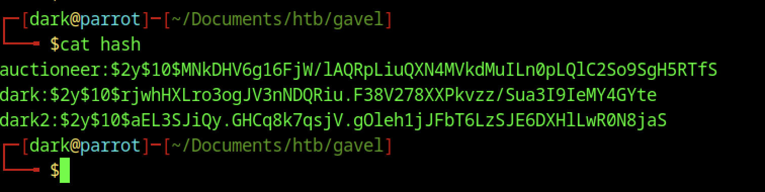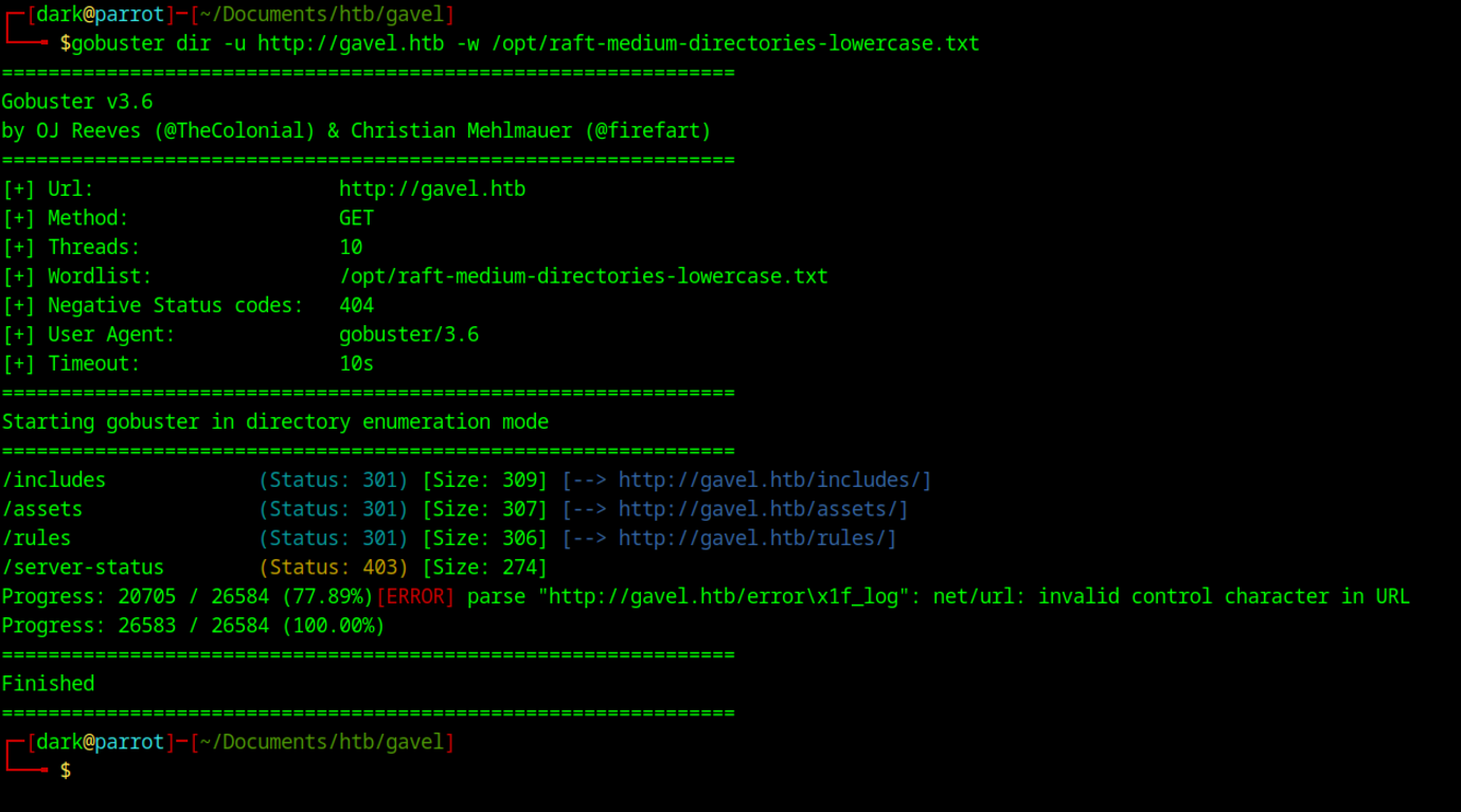 ┌─[dark@parrot]─[~/Documents/htb/gavel]