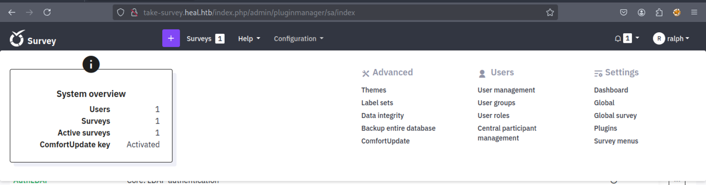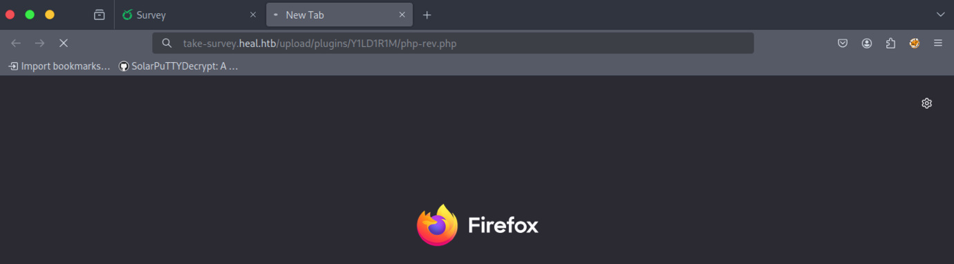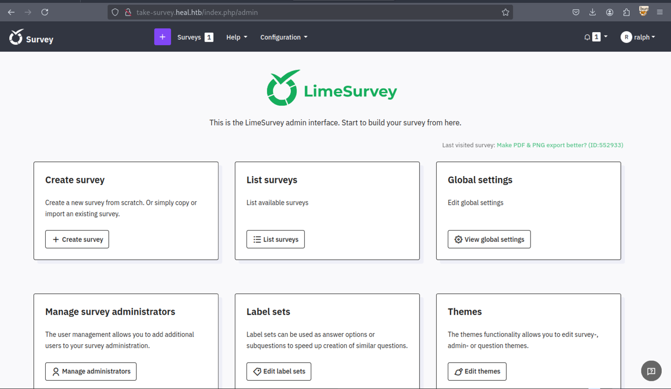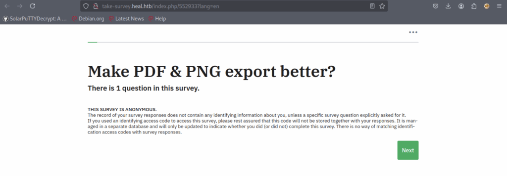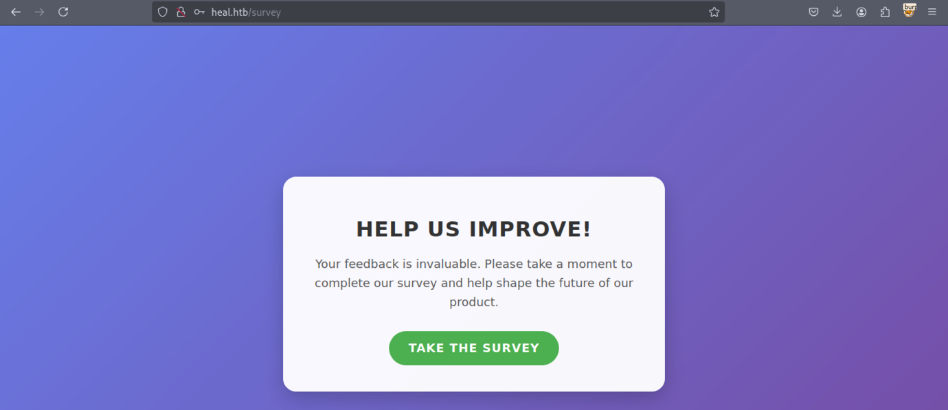 We discovered a new subdomain: ‘take-survey.heal.htb’.