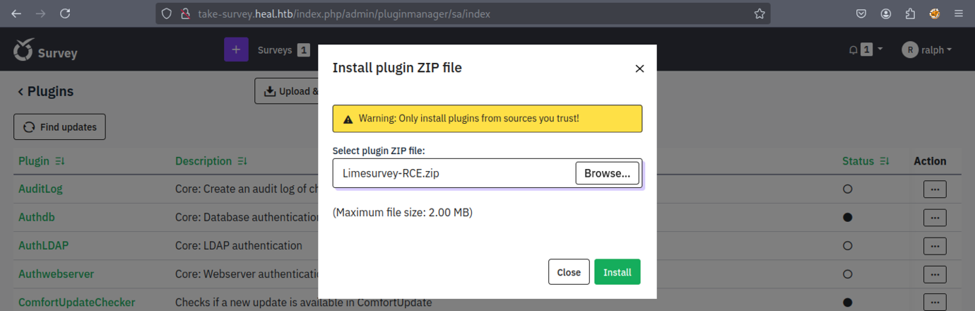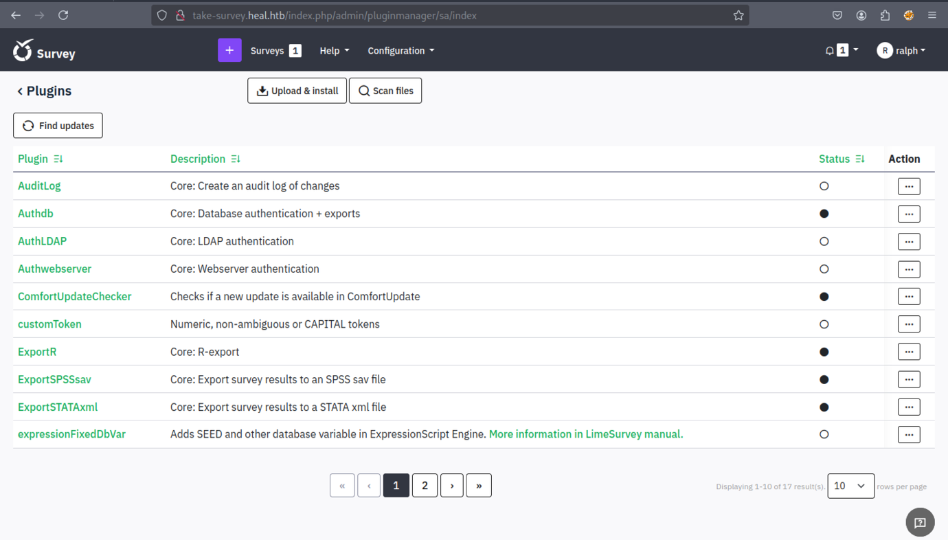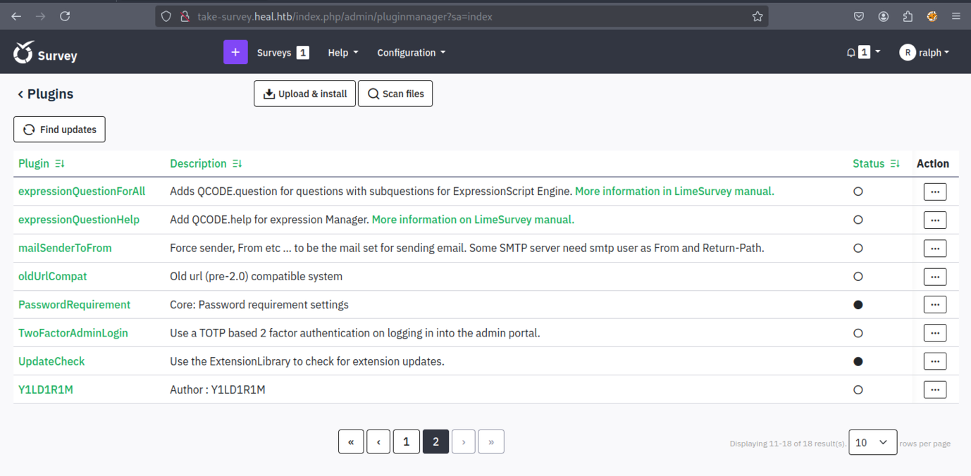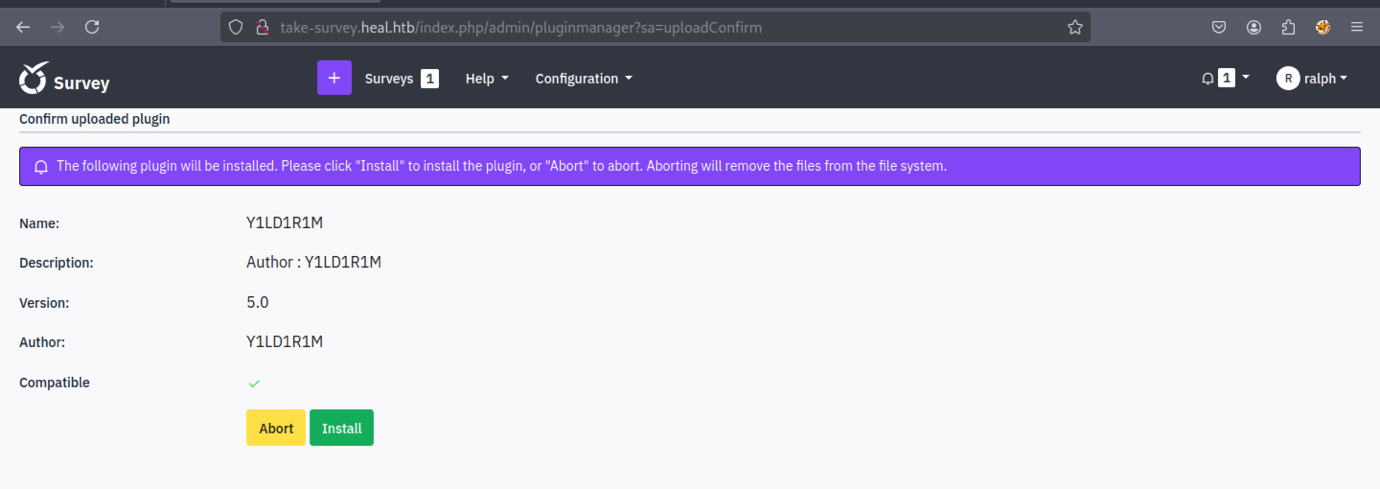 We discovered a new subdomain: ‘take-survey.heal.htb’.