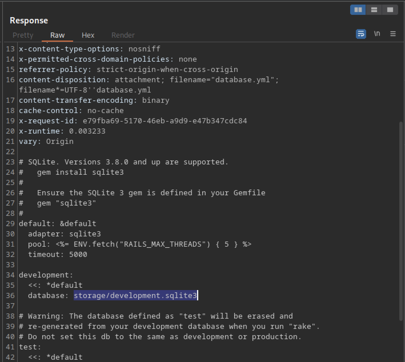 We discovered the database located at storage/development.sqlite3