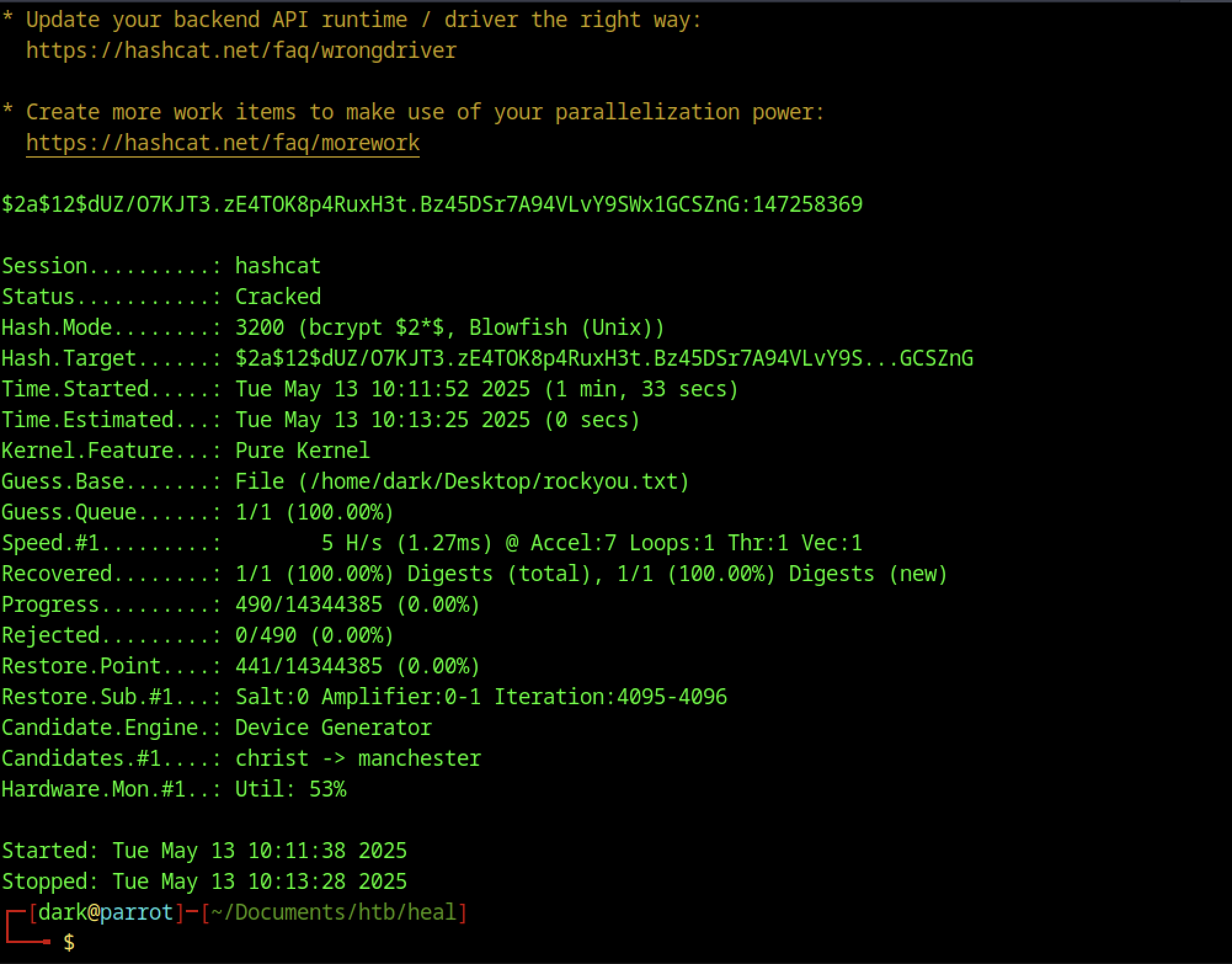 After some time, we successfully obtained the password