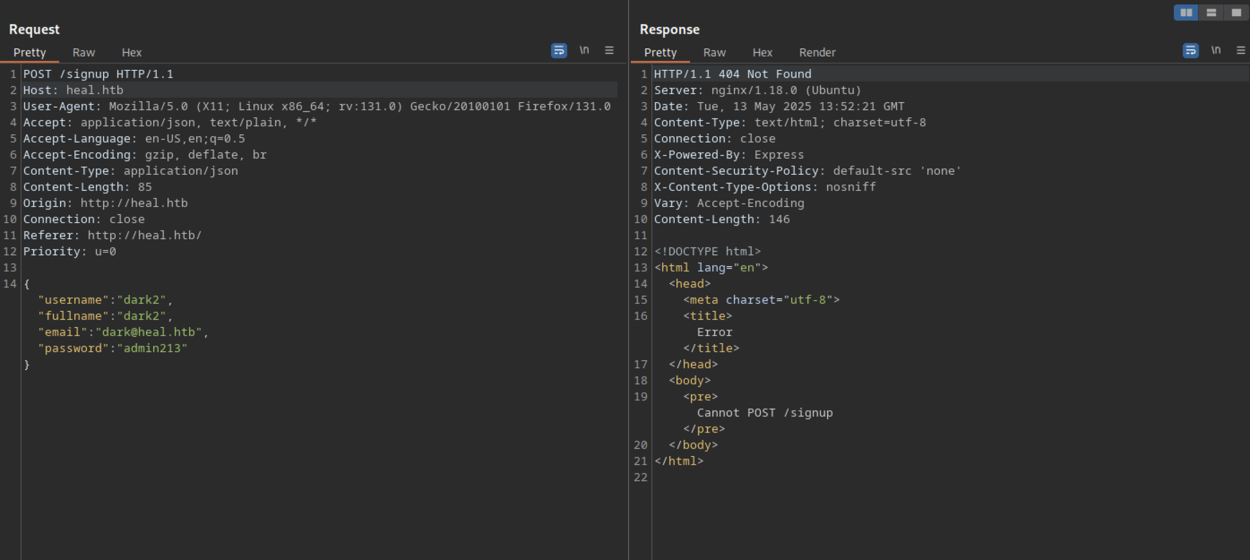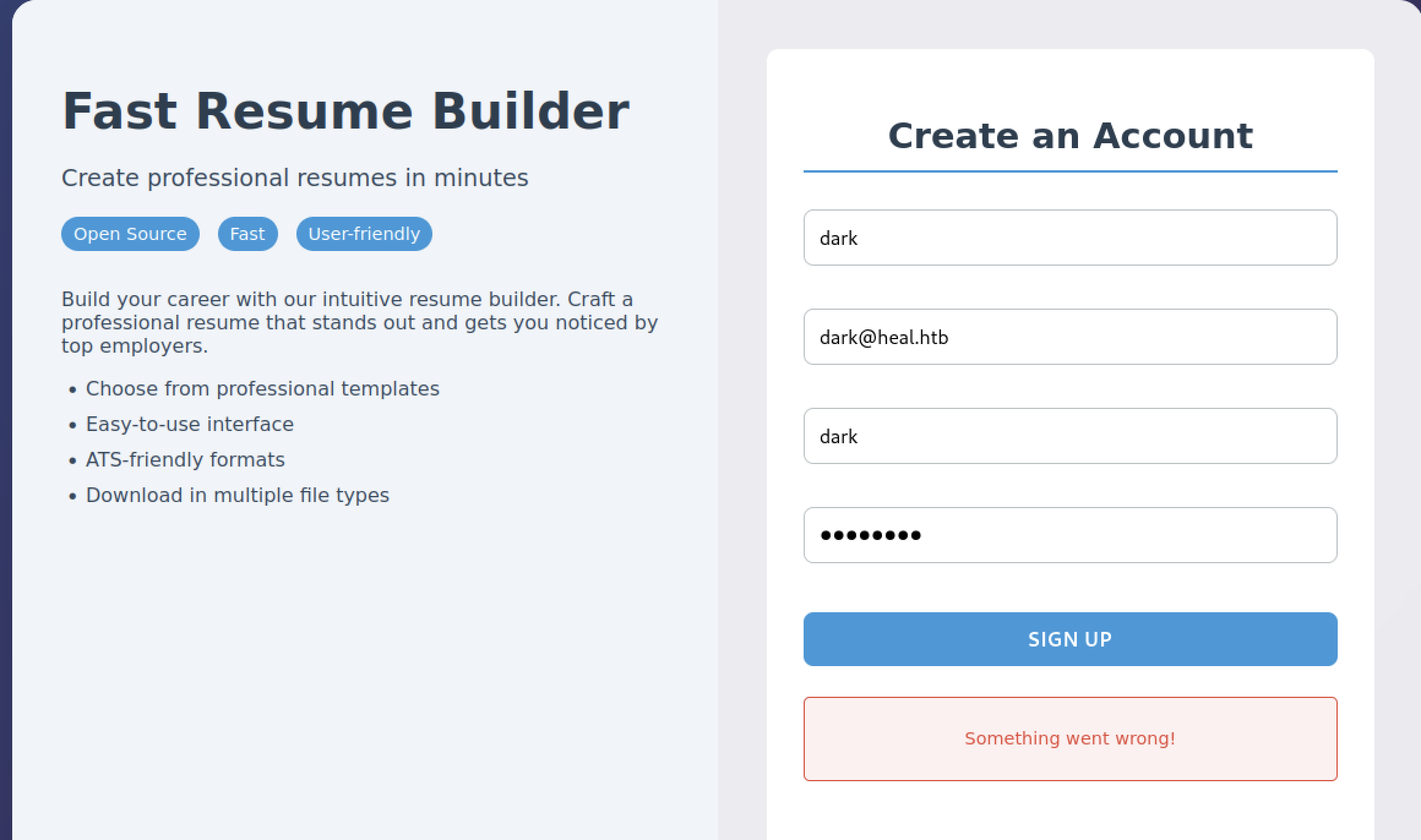 We cannot successfully sign up for a new account using only the heal.htb domain