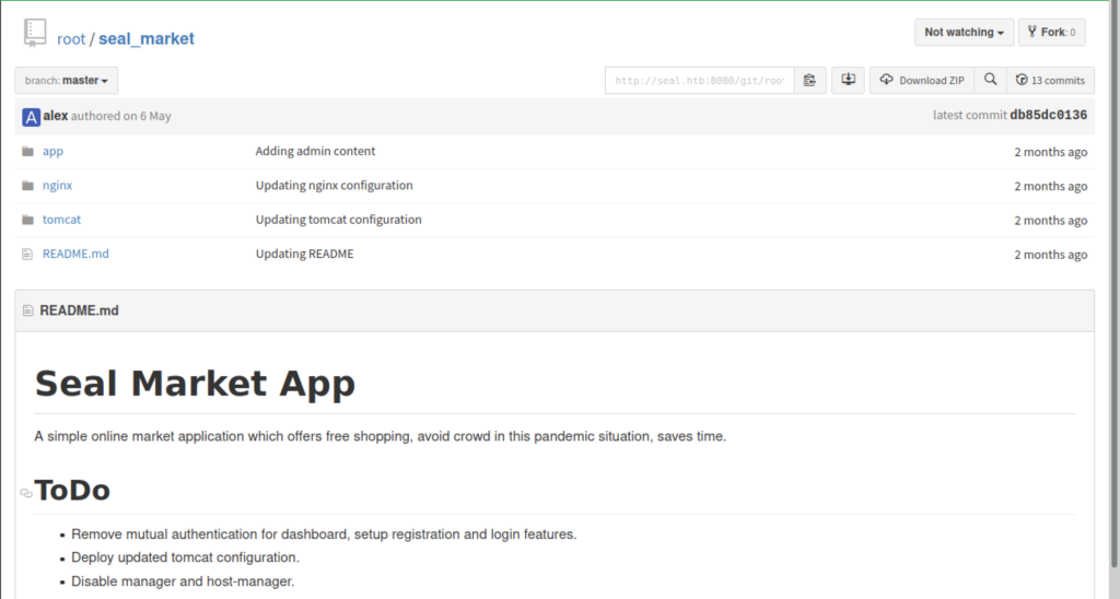 The website will open the Seal Market App which the developer has done 13 commits to the application.