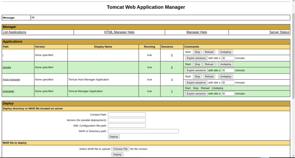 As a result, we did manage to gain access to Tomcat Web Application Manager. A malicious file will be needed to be uploaded on the website interface for future purposes.