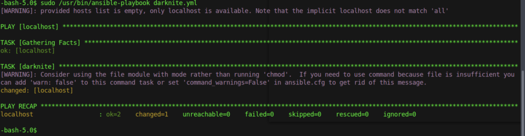In order to get root privileges access, we should execute the command “sudo /usr/bin/ansible-playbook anyname.yml“